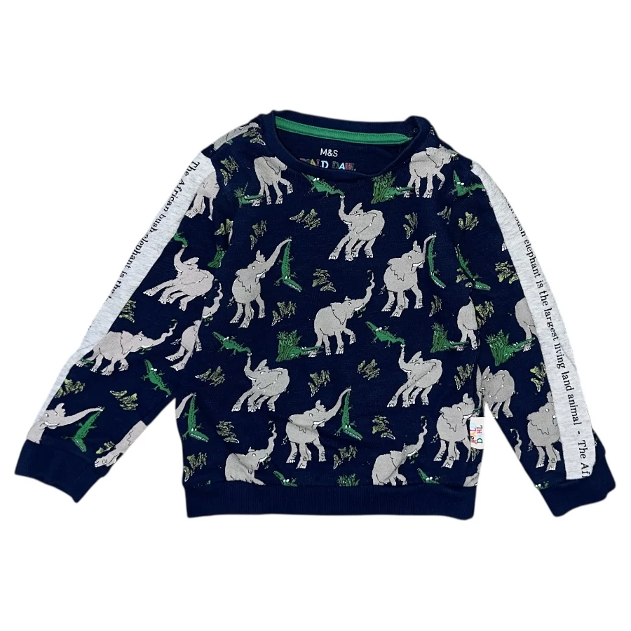 3-4 év (104) M&S elefántos pulóver. Hurkolt belső anyag.