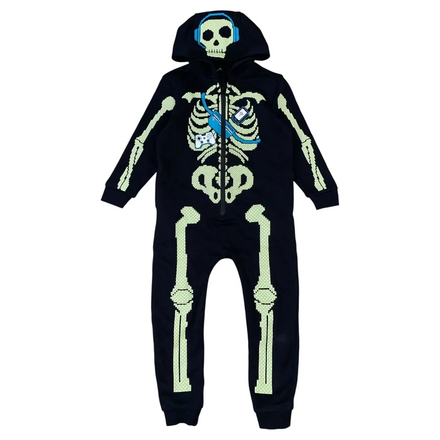 3-4 év (98-104) George Halloween foszforeszkáló gamer csontváz szabadidő overál, pizsama, jelmez