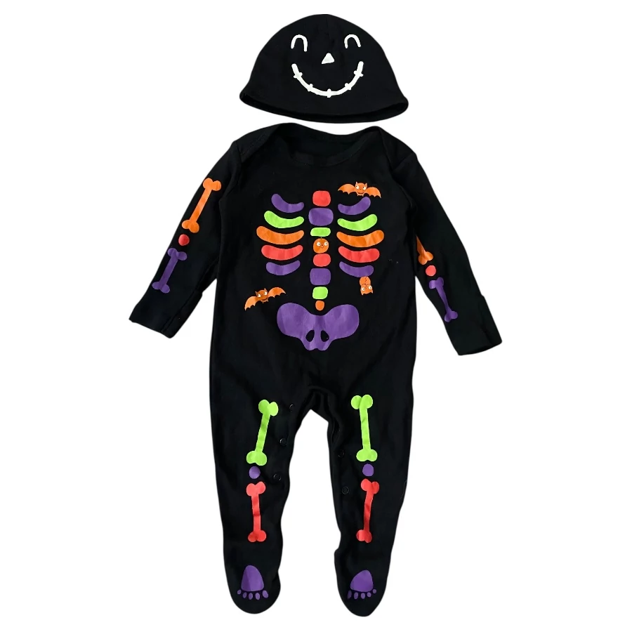 3-6 hó (68) Nutmeg Halloween csontváz rugdalózó sapkával