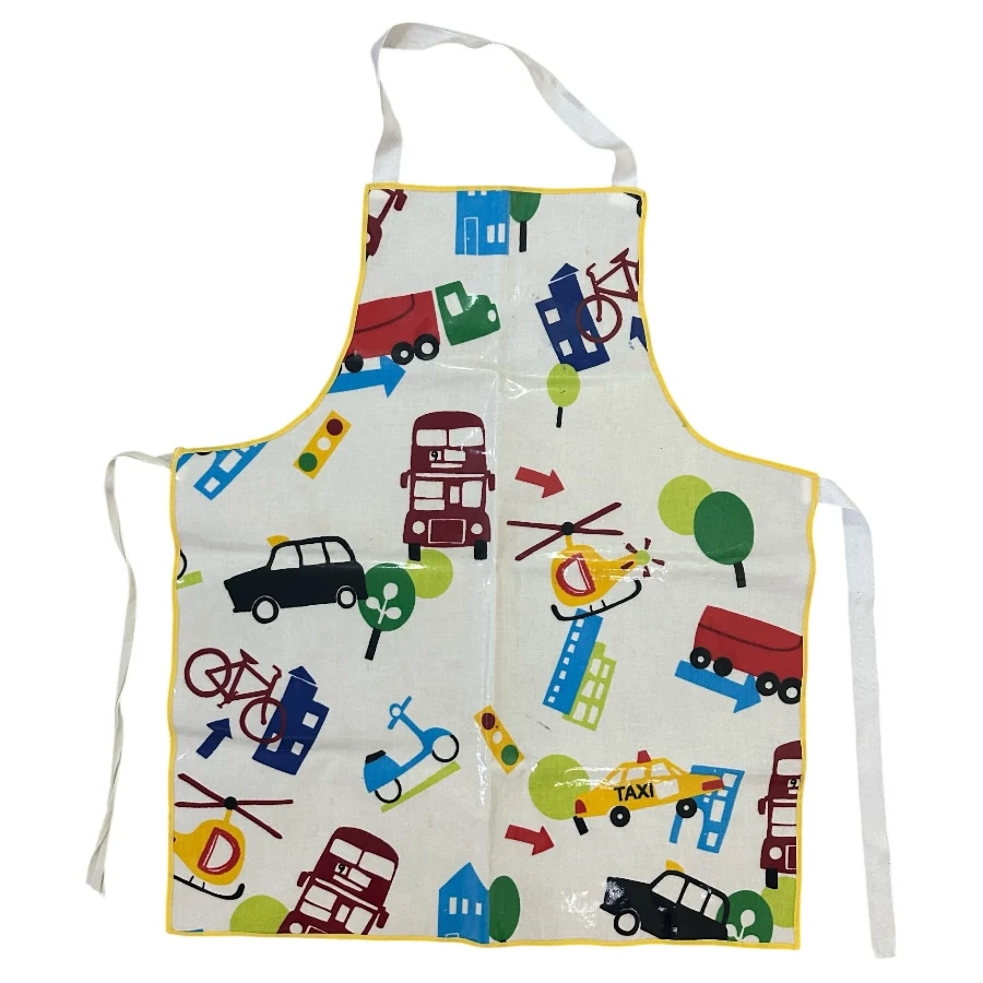 4-8 év (110-128) Járműves ruhavédő, hossza a nyakbakötő nélkül: 68 cm.