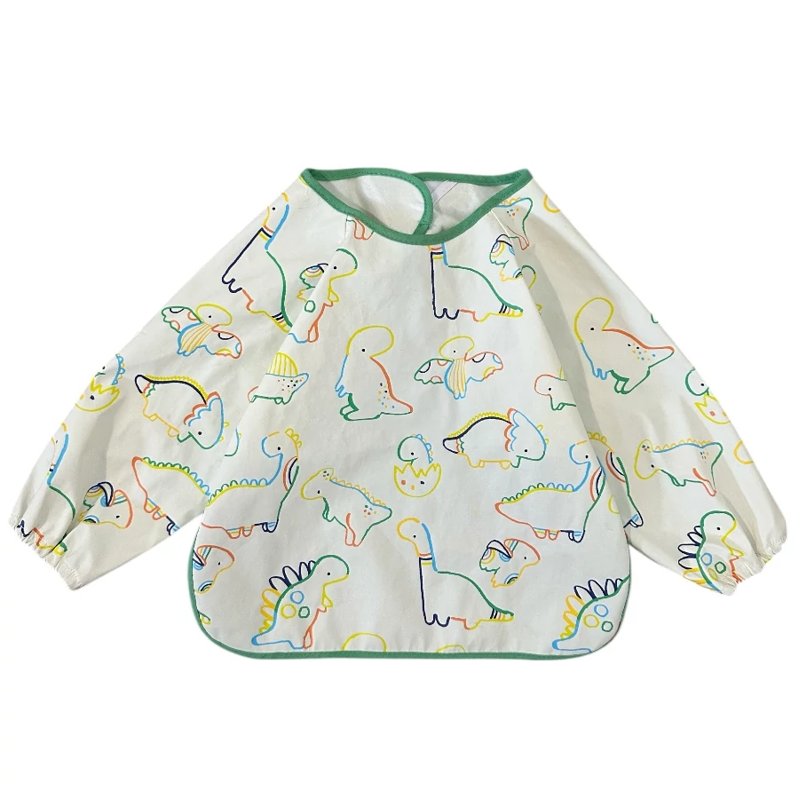 6-12 hó (74-80) Dínós ruhavédő előke, hossza: 34 cm, ujjhossza nyaktól: 31 cm.