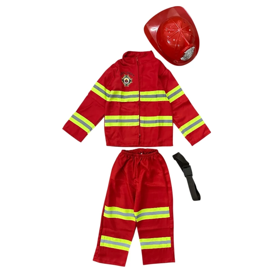 Új 3-4 év (98-104) Tűzoltó jelmez övvel, sisakkal